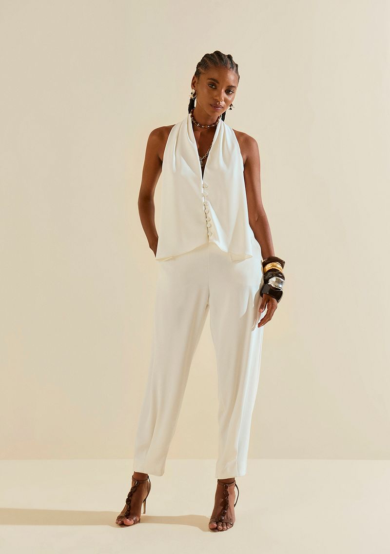 Colete Morena Rosa Ajustado Sem Manga Padrão Off White