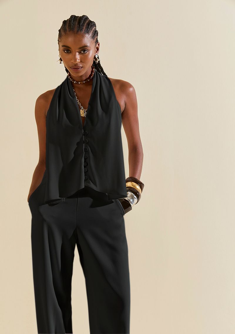 LinhasColeçõesRoupasCasacos e JaquetasCasacos e JaquetasColete Morena Rosa Ajustado Sem Manga Padrão Preto