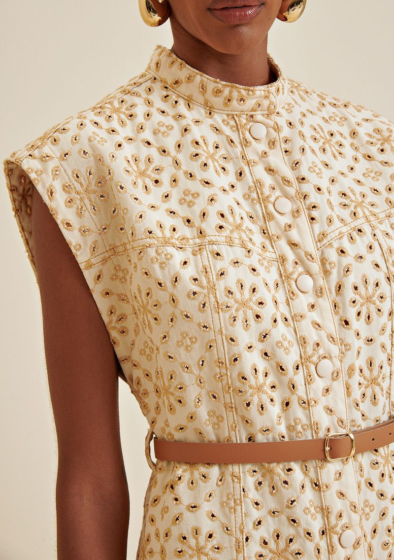OUTLETLinhasColeçõesJeansJeansColetesColete Morena Rosa Alongado Com Cinto Amarelo