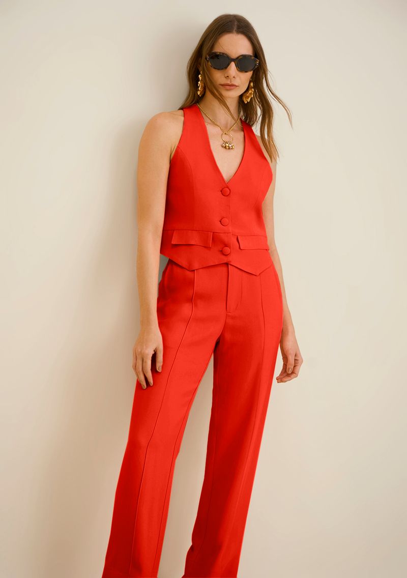 OUTLETLinhasColeçõesRoupasCasacos e JaquetasCasacos e JaquetasColete Morena Rosa Médio Com Lapela Laranja