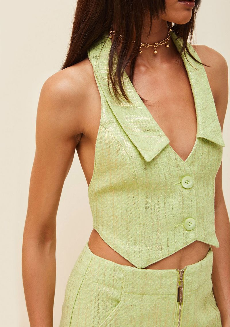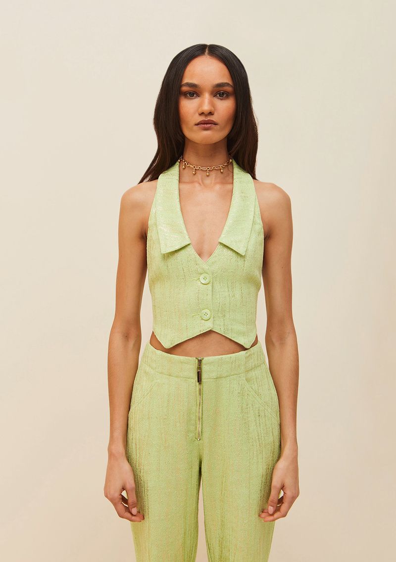 Colete Morena Rosa Médio Detalhe Botão Verde