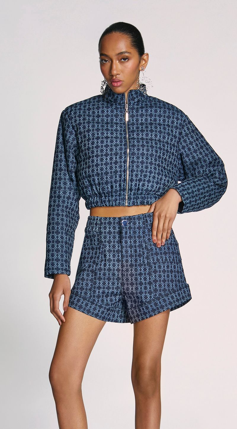 Jaqueta Morena Rosa Bomber Puffer Azul