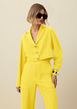 OUTLETLinhasColeçõesRoupasCasacos e JaquetasCasacos e JaquetasJaqueta Morena Rosa Cropped Detalhe Botões Amarelo