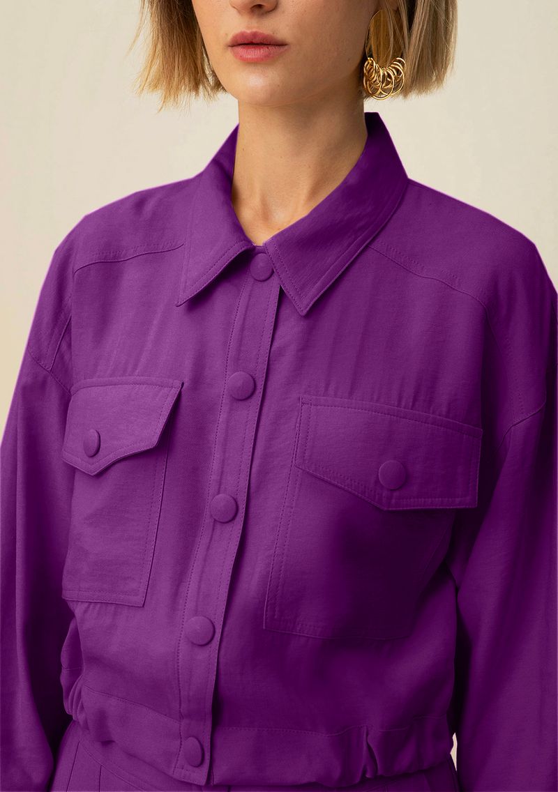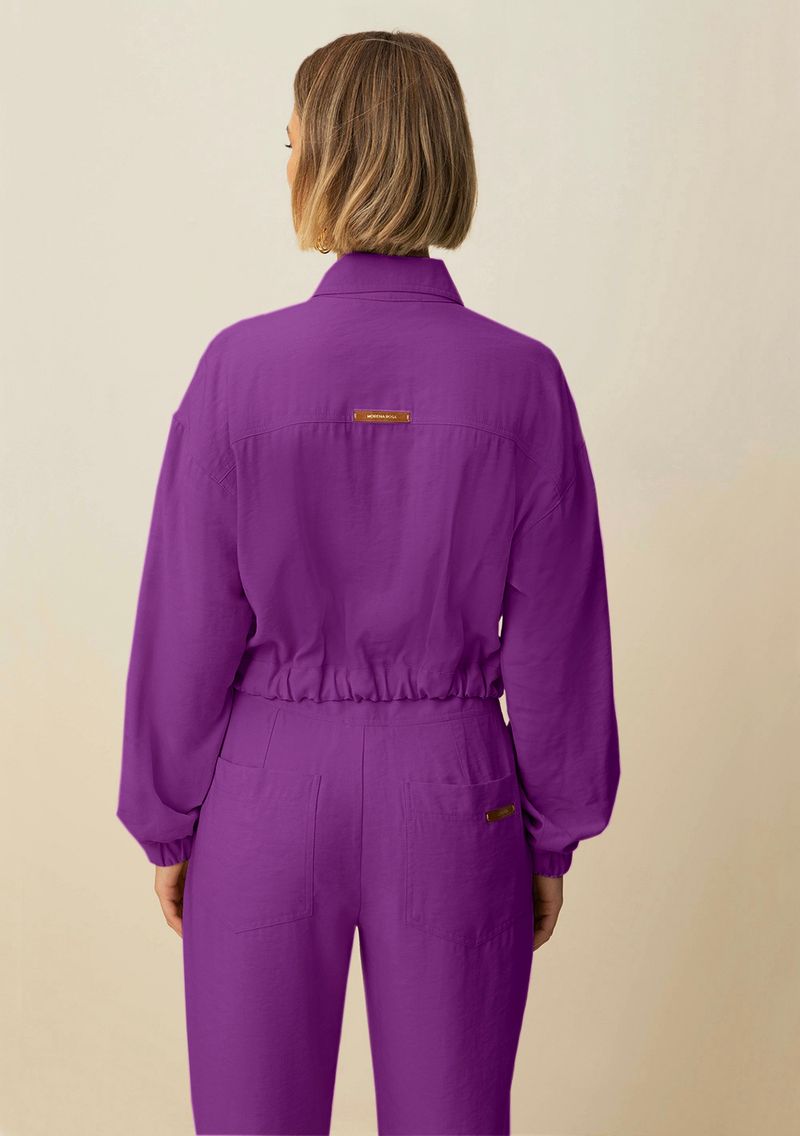 Jaqueta Morena Rosa Cropped Detalhe Pesponto Roxo