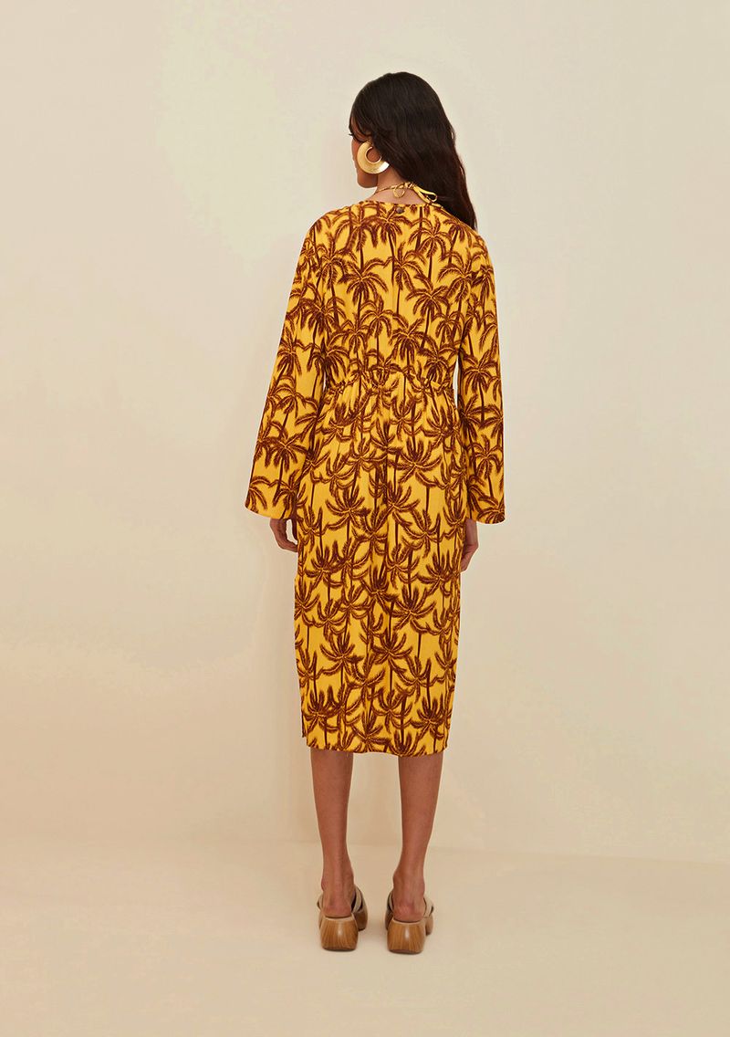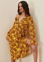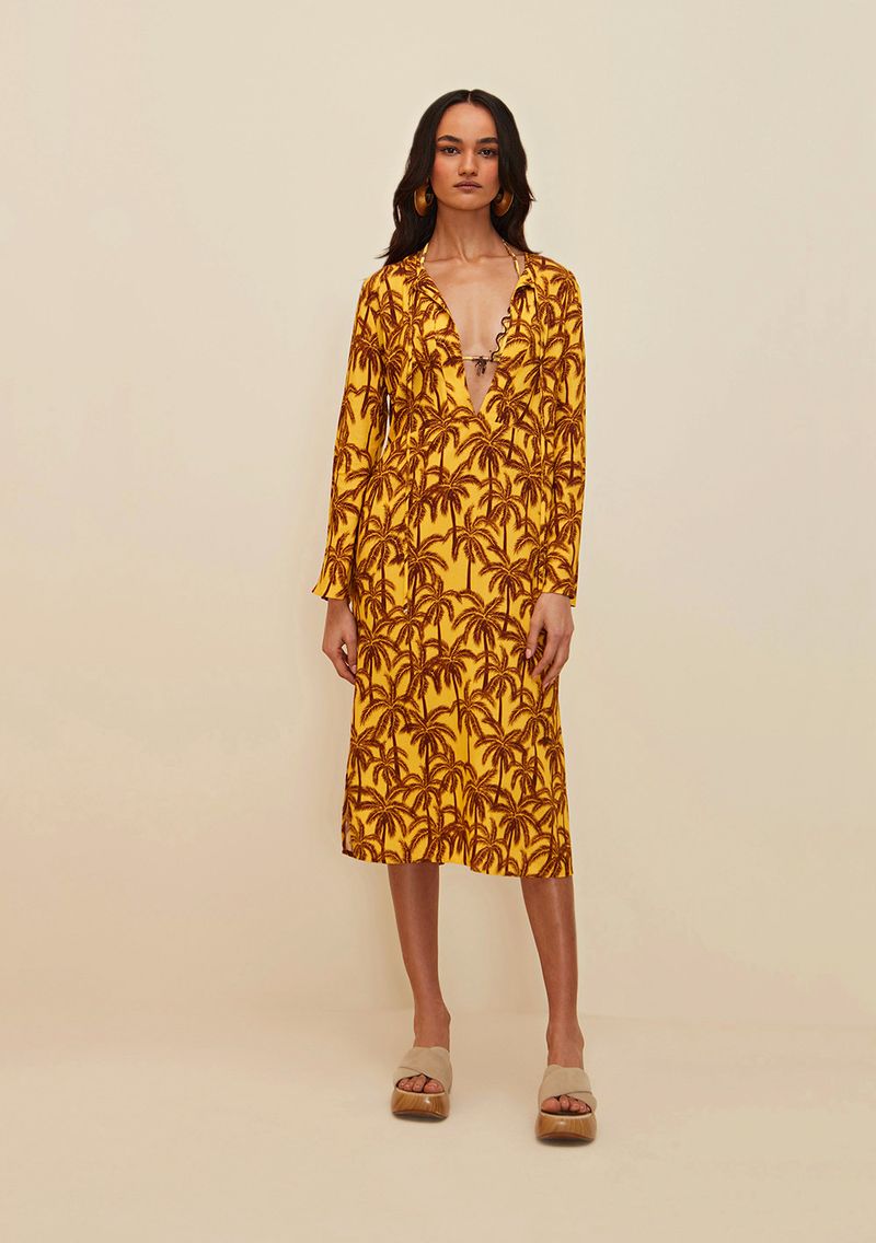 Kaftan Morena Rosa Midi Amarração Frontal Amarelo
