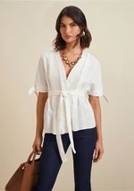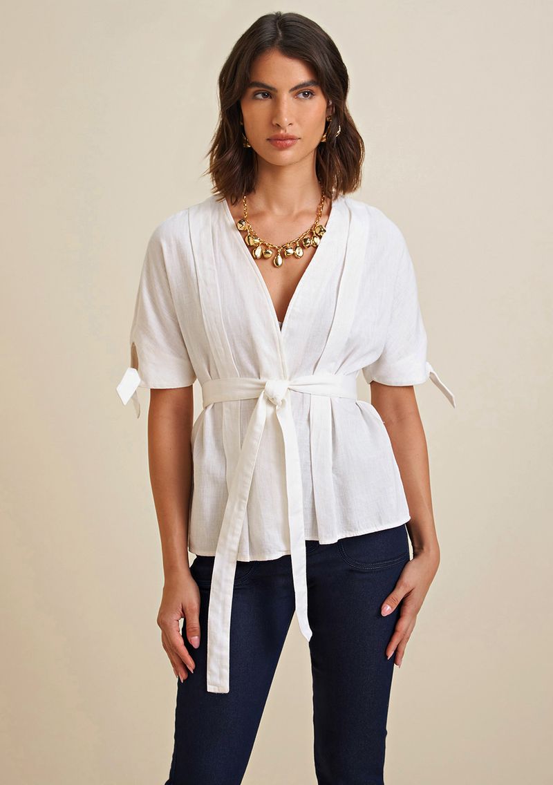 OUTLETColeçõesCasacos e JaquetasKimono Morena Rosa Curto Com Amarração Off White