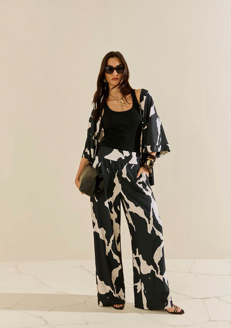 LinhasColeçõesRoupasCasacos e JaquetasCasacos e JaquetasKimono Morena Rosa Solto Manga 3 Quartos Padrão Preto