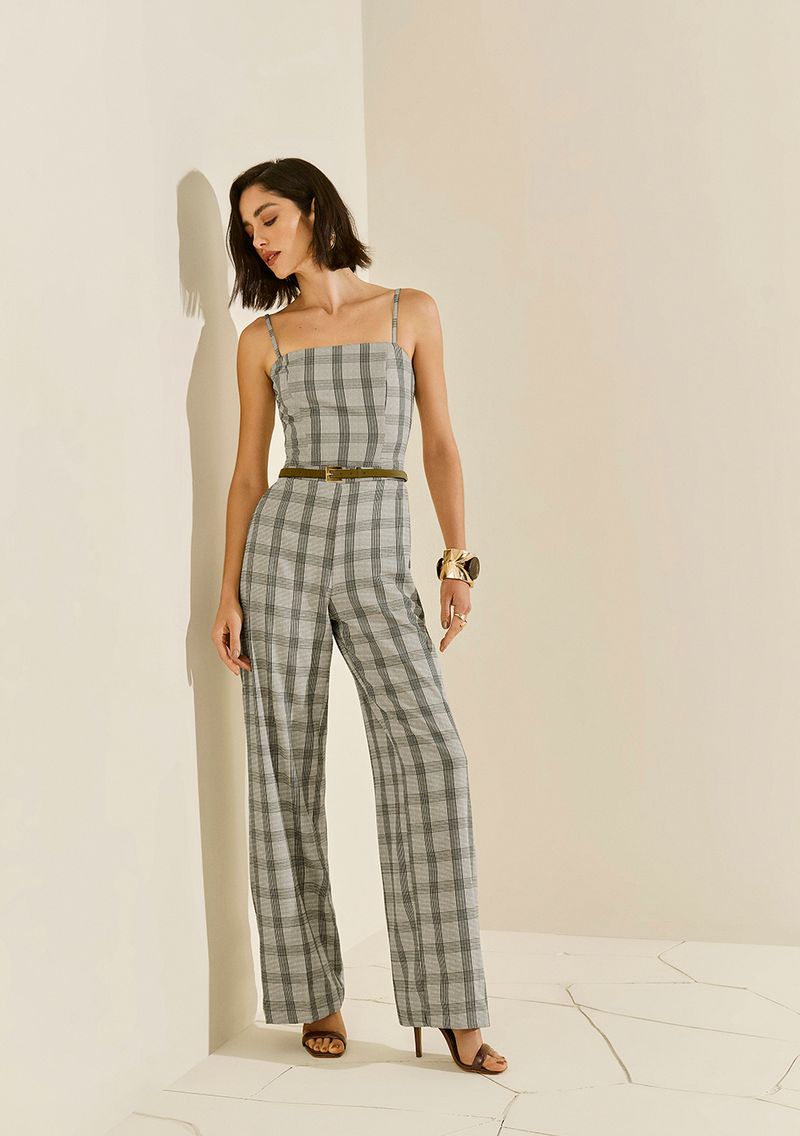 Macacão Morena Rosa Ajustado Decote Reto Sem Manga Longo Cinza