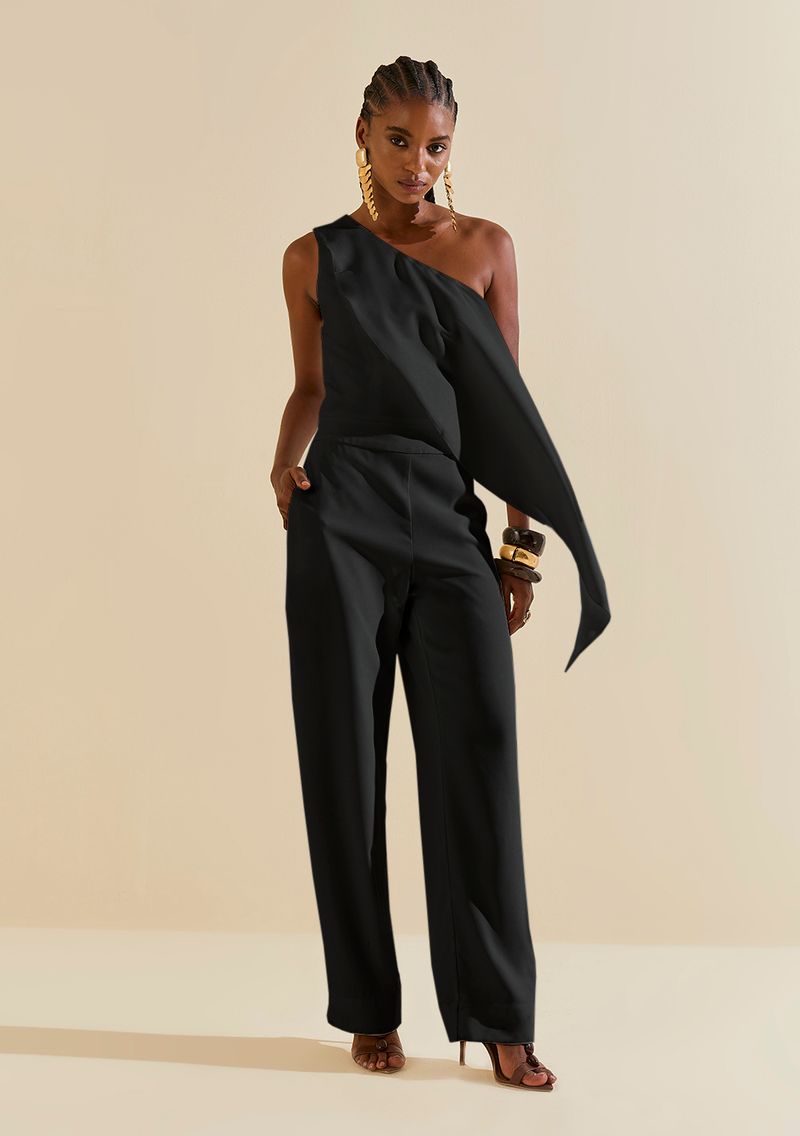 Macacão Morena Rosa Ajustado Um Ombro Só Sem Manga Longo Preto