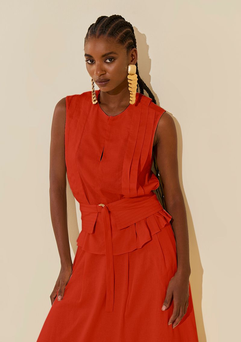 Regata Morena Rosa Ajustada Decote Careca Padrão Vermelho