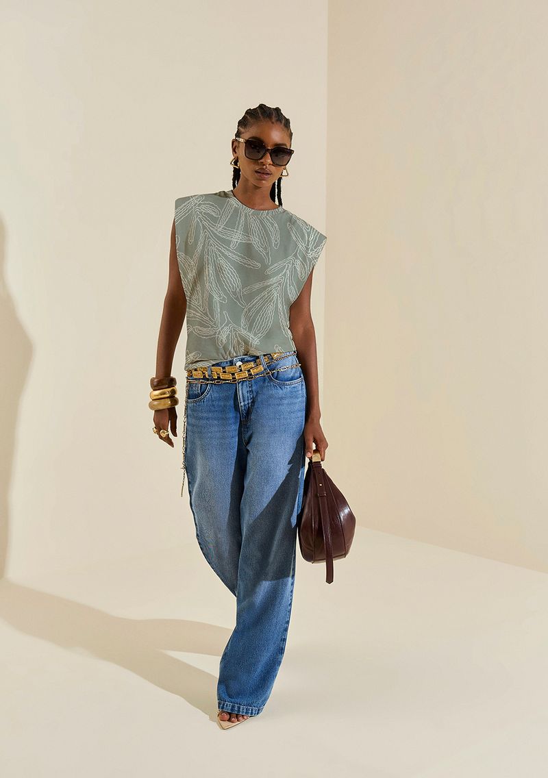 LinhasColeçõesRoupasBlusasBlusasRegata Morena Rosa Ajustada Gola Alta Padrão Verde