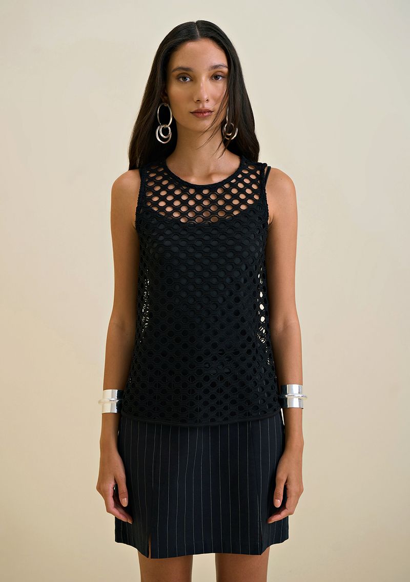OUTLETLinhasColeçõesRoupasBlusasBlusasRegata Morena Rosa Decote Redondo Detalhe Viés Preto