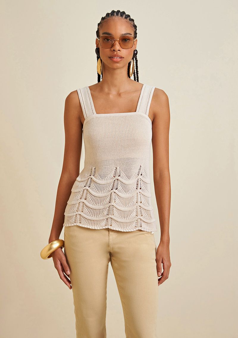 OUTLETColeçõesBlusasRegata Morena Rosa Decote Reto Com Nervura Off White