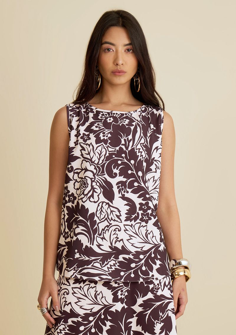 OUTLETLinhasColeçõesRoupasBlusasBlusasRegata Morena Rosa Solta Decote Careca Padrão Marrom
