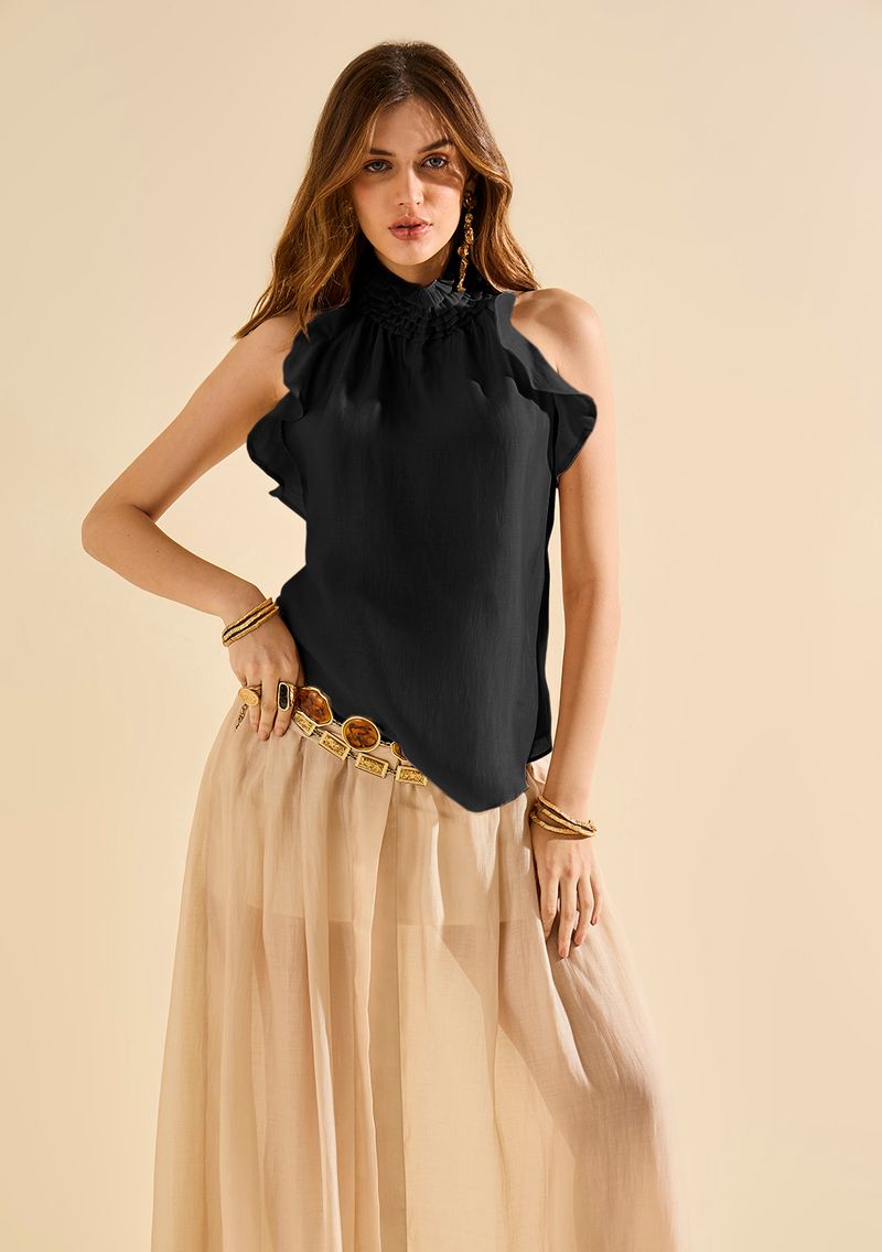 Envolva-se no charme irresistível da Regata Morena Rosa Solta Decote Costas Padrão Preto, um verdadeiro tributo à feminilidade moderna. Com um design amplo e sofisticado, esta blusa em voil é a escolha perfeita para quem busca elegância e versatilidade. Ideal para ocasiões casuais ou eventos mais sofisticados, ela se adapta ao seu estilo de vida dinâmico, trazendo um toque de bossa carioca para cada look. Combine-a com calças cargo ou skinny e acessórios leves para um visual que exala confiança e autenticidade. A coleção 'Ela é Carioca!' celebra o espírito vibrante e descontraído do verão, garantindo que você brilhe em qualquer cenário. *Os acessórios não acompanham a peça*