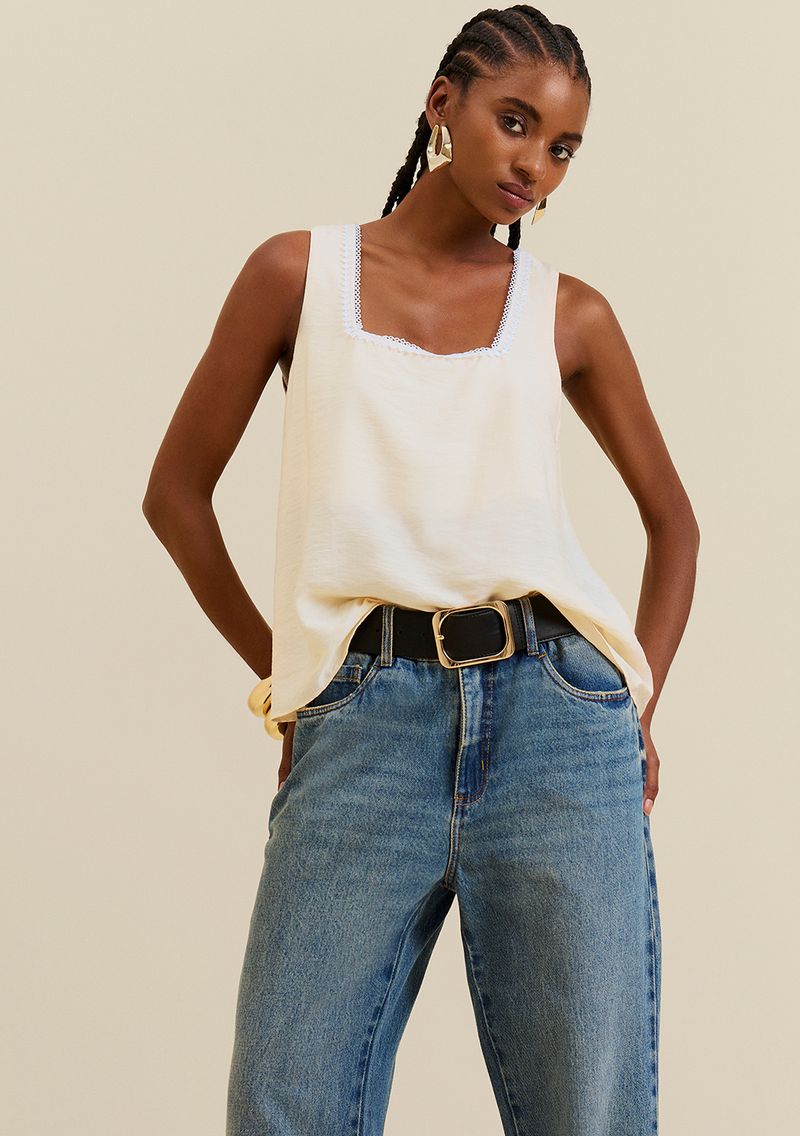 LinhasColeçõesRoupasBlusasBlusasRegata Morena Rosa Solta Decote Quadrado Alongada Bege