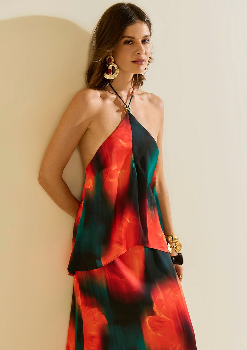 LinhasColeçõesRoupasBlusasBlusasRegata Morena Rosa Solta Decote V Alongada Vermelho