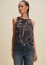 LinhasColeçõesRoupasBlusasBlusasRegata Solta Decote Canoa Padrão Preto