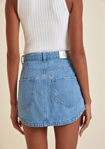 Saia Morena Rosa Curta Five Pockets Bordado Manual Jeans