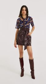 Saia Morena Rosa Curta Reta Com Faixa Roxo