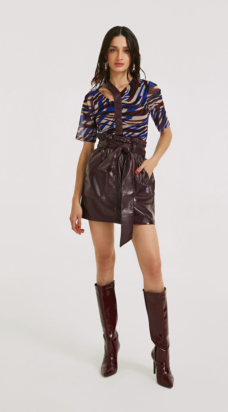 OUTLETLinhasColeçõesRoupasSaiasSaiasSaia Morena Rosa Curta Reta Com Faixa Roxo