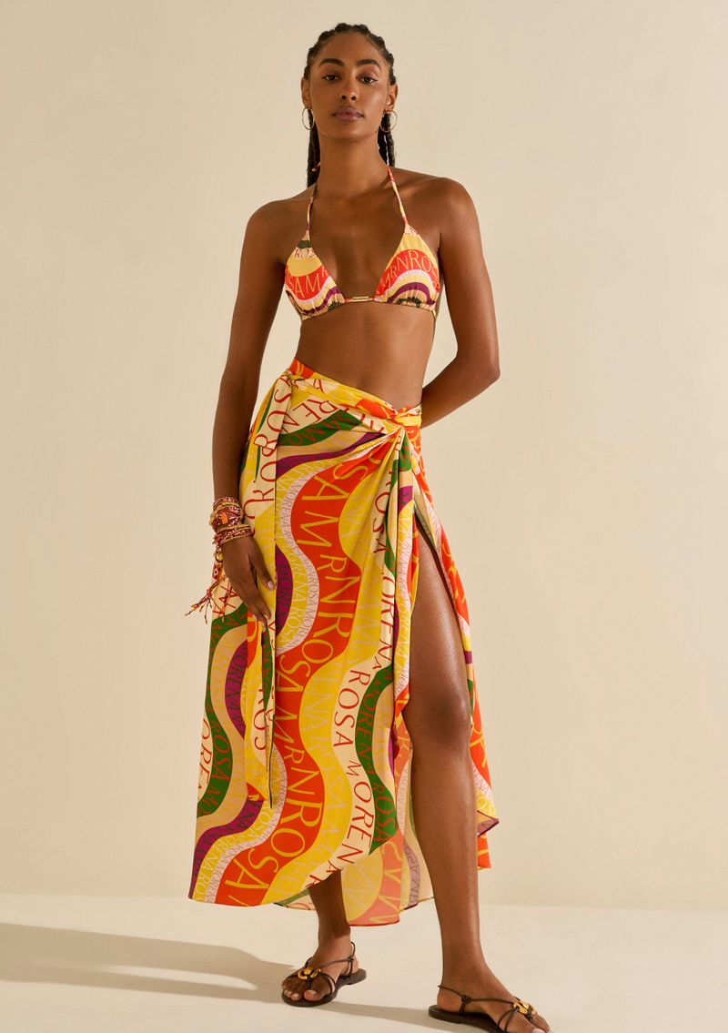 Transforme cada momento em pura poesia com a Saia Morena Rosa Evasê Alta Midi Amarelo. Esta peça, da coleção Recife Verão 2026, exala o frescor e a beleza da mulher Morena Rosa, perfeita para brilhar à beira da praia ou piscina. Com sua modelagem evasê em tecido fluido de 100% viscose, ela oferece leveza e movimento inigualáveis. Combine com um top cropped e sandálias de tiras para um look vibrante e sofisticado. A intensidade das cores e o design exclusivo tornam esta saia uma verdadeira obra de arte, capturando a essência tropical e a brasilidade em cada detalhe. Os acessórios não acompanham as peças.