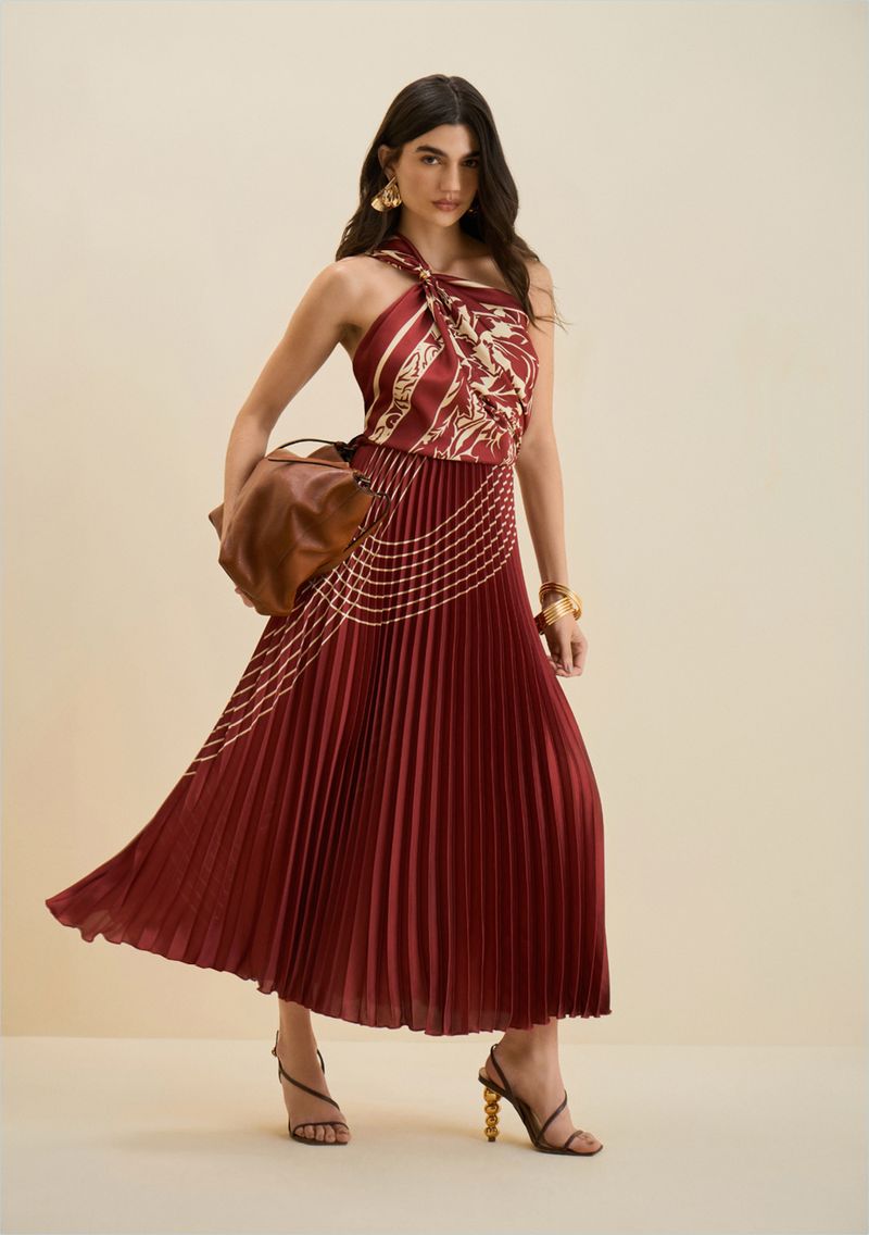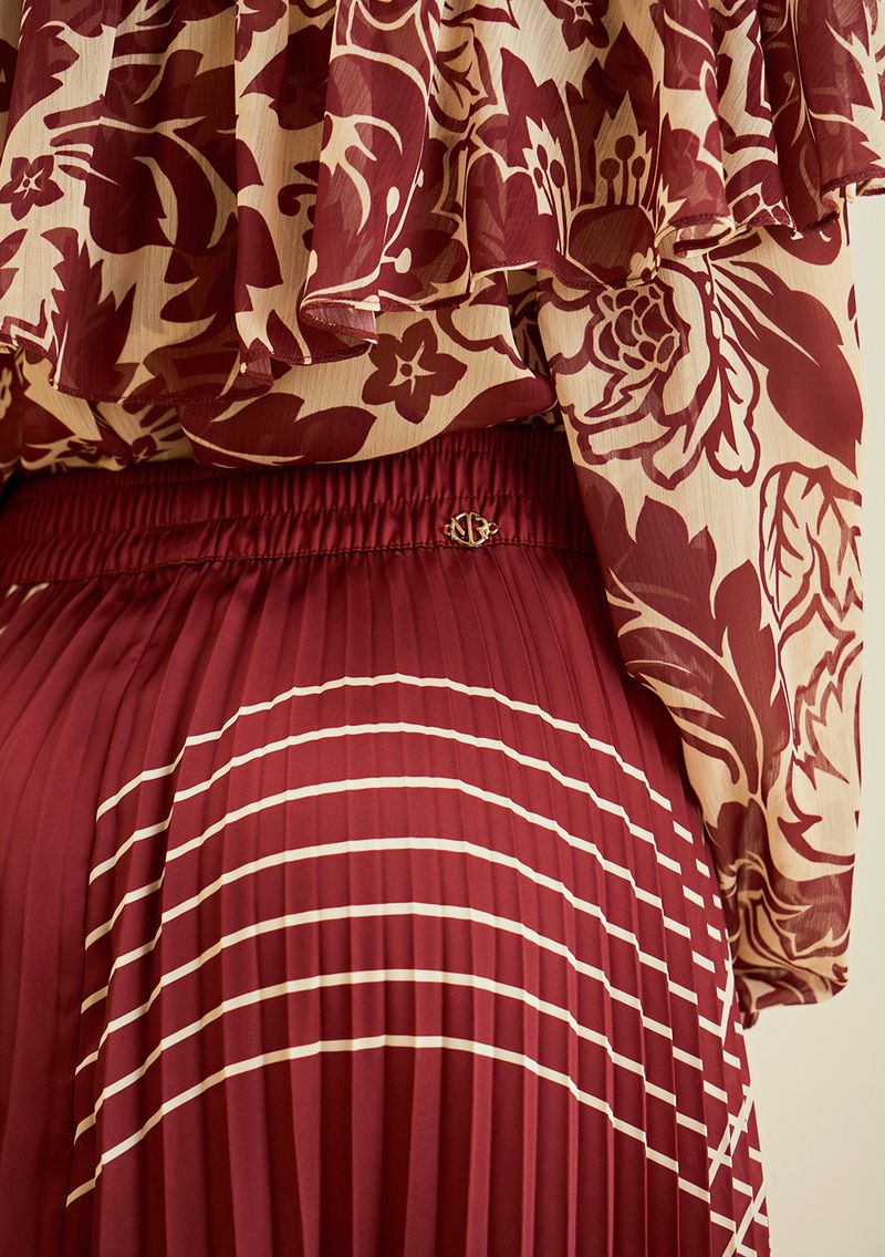 Eleve seu estilo com a Saia Morena Rosa Evasê Alta Midi Bordo. Esta peça combina sofisticação e versatilidade, perfeita para transitar do escritório a eventos sociais com elegância. O design evasê proporciona um caimento impecável, enquanto a cintura alta acentua a silhueta. O tom bordo, em cetim, reflete a força e a vibração da natureza, alinhando-se à essência boho da coleção de inverno. Combine com blusas neutras para um look clássico ou ouse com estampas vibrantes para destacar sua personalidade. Complemente com acessórios dourados ou prata, mas lembre-se, os acessórios não acompanham a peça.
