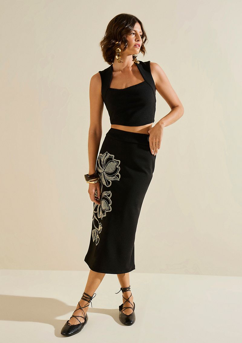 OUTLETLinhasColeçõesRoupasSaiasSaiasSaia Morena Rosa Lápis Alta Midi Preto
