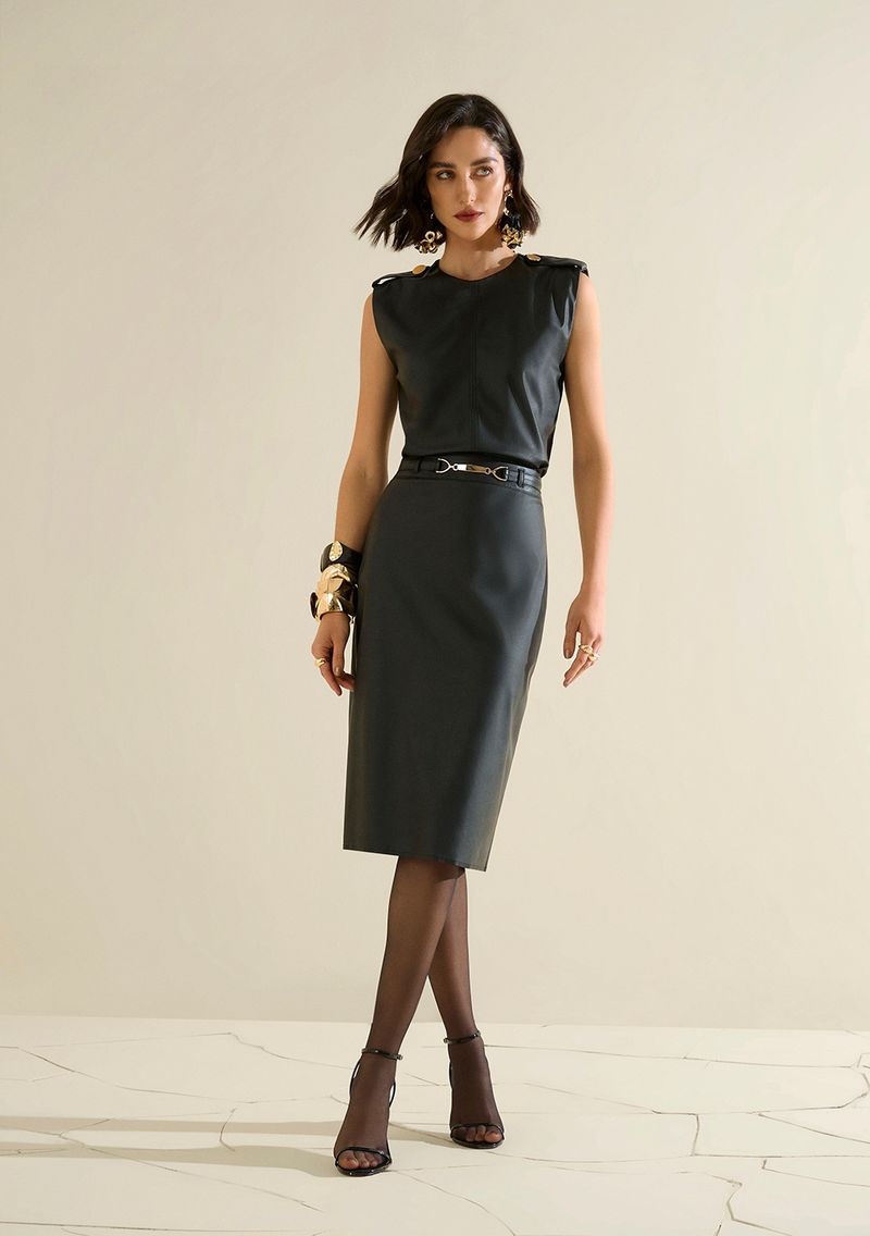 LinhasColeçõesRoupasSaiasSaiasSaia Morena Rosa Lápis Alta Midi Preto