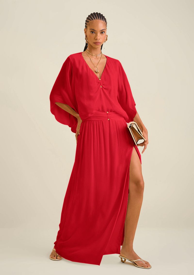 OUTLETLinhasColeçõesRoupasSaiasSaiasSaia Morena Rosa Longa Reta Com Fenda Vermelho
