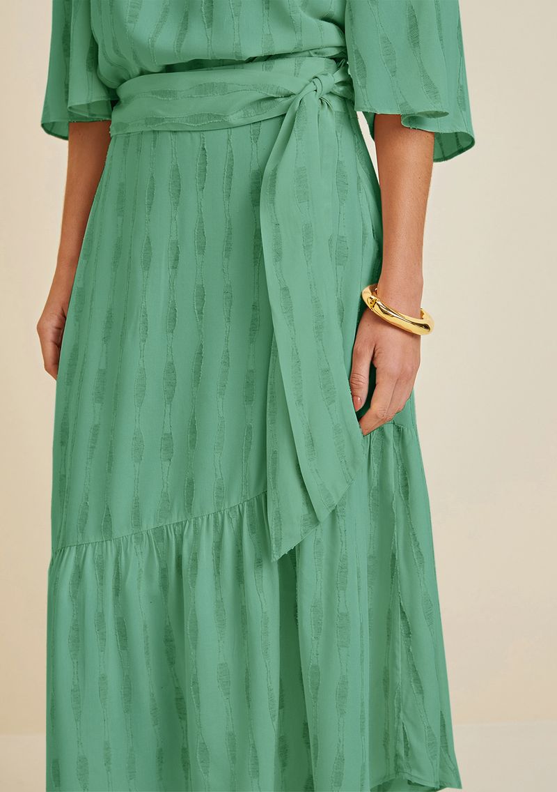 OUTLETLinhasColeçõesRoupasSaiasSaiasSaia Morena Rosa Midi Assimétrica Detalhe Cós Verde