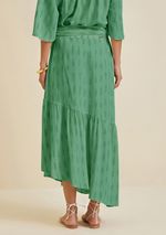 Saia Morena Rosa Midi Assimétrica Detalhe Cós Verde