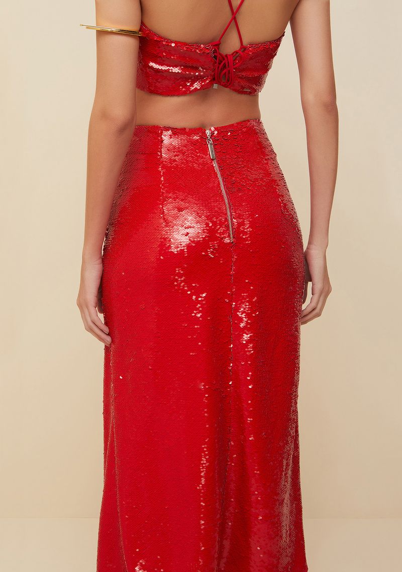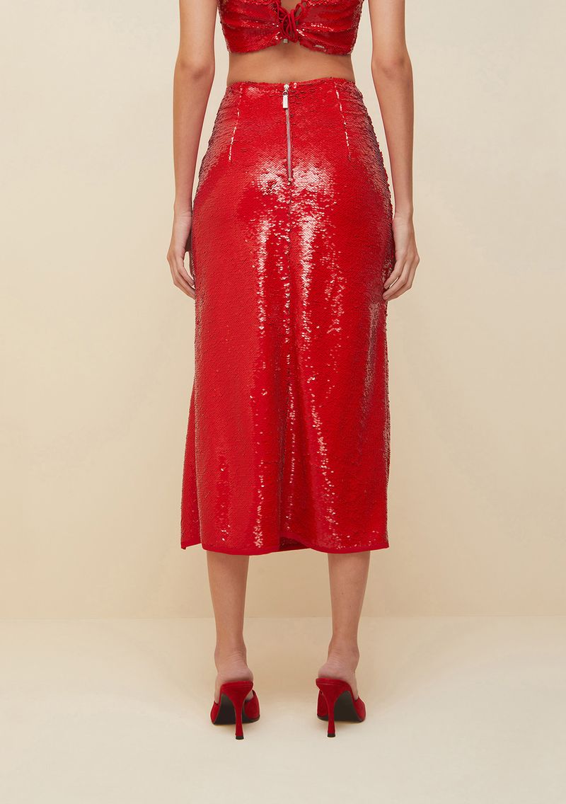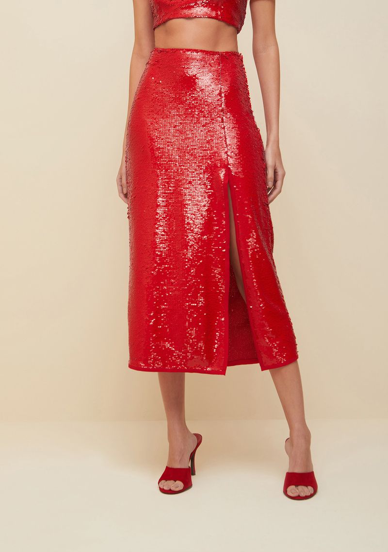 Saia Morena Rosa Midi Reta Com Fenda Vermelho