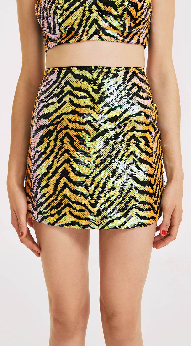 OUTLETLinhasColeçõesRoupasSaiasSaiasSaia Morena Rosa Mini Reta Detalhe Paetê Preto
