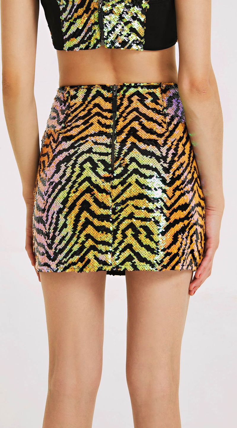 Saia Morena Rosa Mini Reta Detalhe Paetê Preto