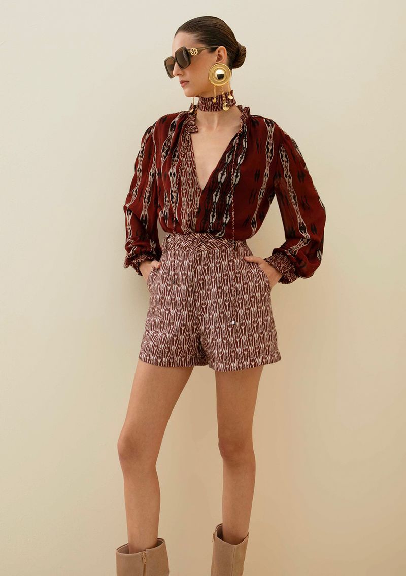Shorts Morena Rosa Alfaiataria Bolso Faca Marrom