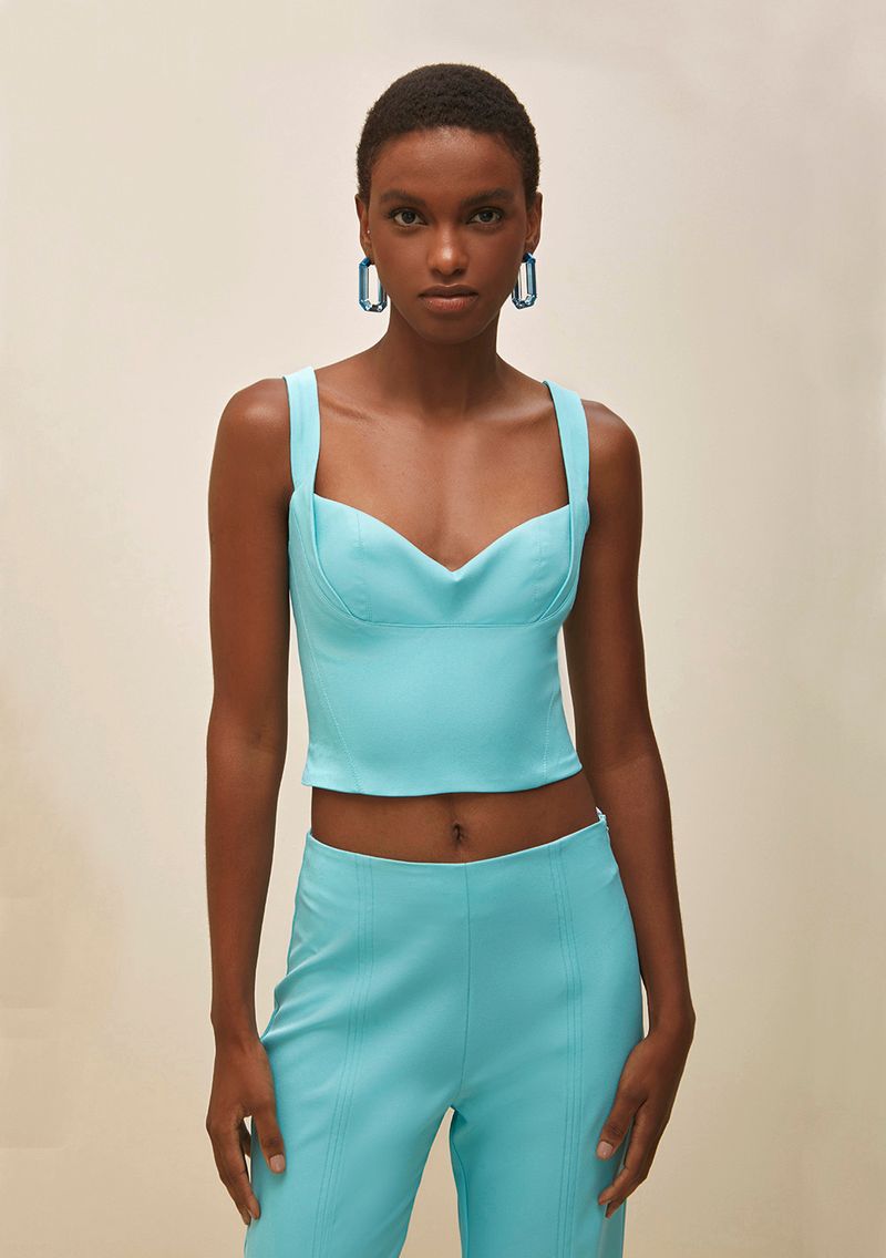 OUTLETLinhasColeçõesRoupasBlusasBlusasTop Morena Rosa Alfaiataria Alça Larga Detalhe Zíper Azul