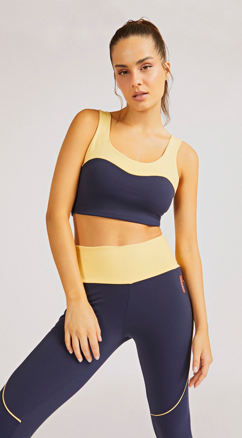OUTLETLinhasFitnessTopsTop Morena Rosa Comfort Alça Larga Composê De Tecidos Azul Marinho