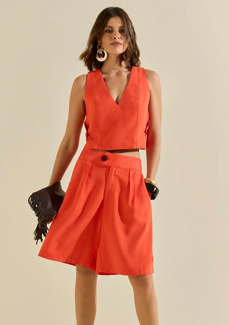 LinhasColeçõesRoupasBlusasBlusasTop Morena Rosa Decote Careca Alça Fina Laranja