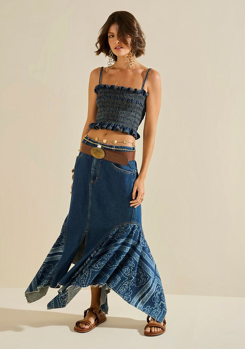Top Morena Rosa Decote Reto Alça Fina Azul