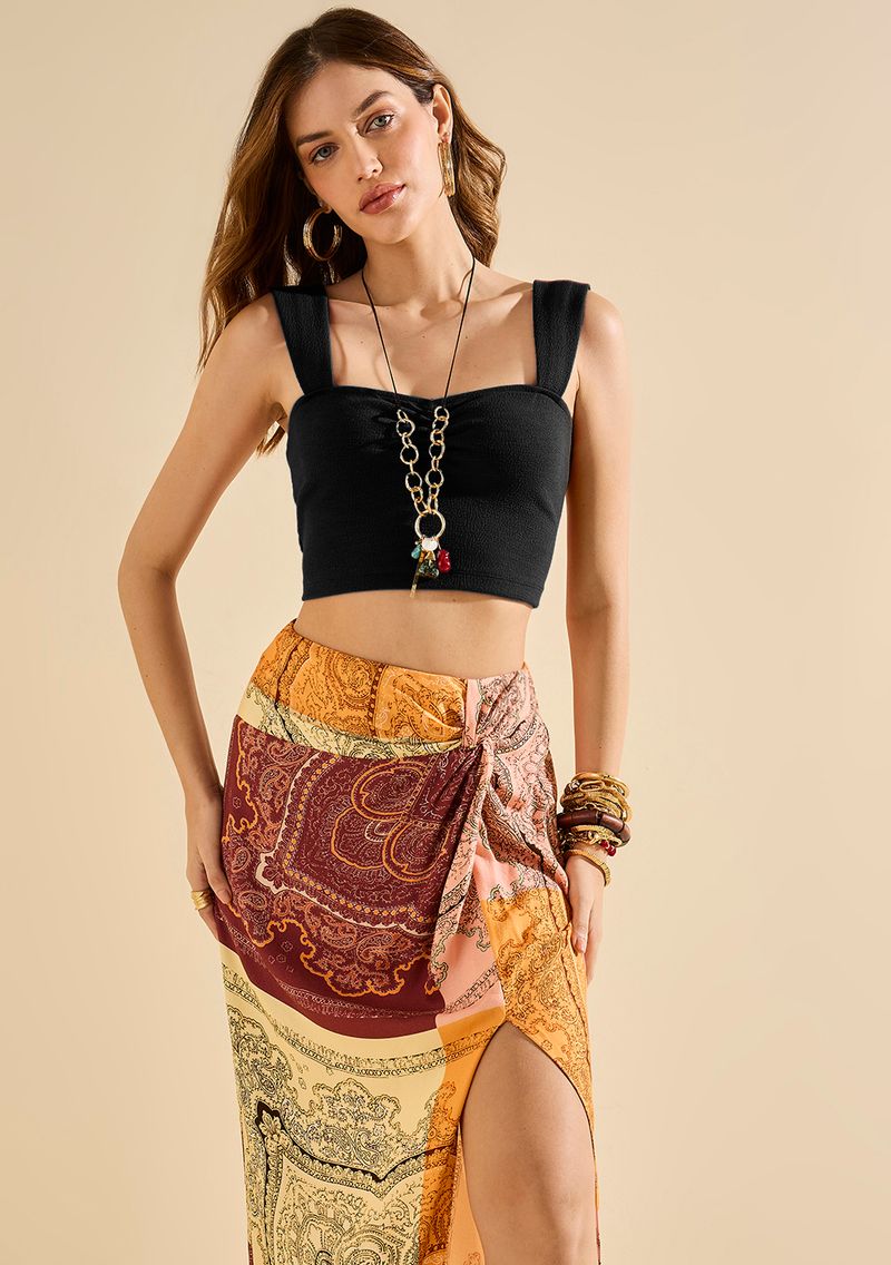 Envolva-se na essência carioca com o Top Morena Rosa Decote Reto Alça Larga Preto. Uma peça que combina versatilidade e estilo, perfeita para acompanhar a mulher moderna em qualquer ocasião. Com um design elegante e sofisticado, este top é ideal para compor looks vibrantes, seja com uma calça cargo para um visual casual ou skinny para um toque mais sofisticado. A coleção 'Ela é Carioca!' traz a bossa e o charme do Rio de Janeiro, celebrando a feminilidade e autoconfiança. Feito com materiais de alta qualidade, o tecido abraça seu corpo, garantindo conforto e suavidade o dia todo. Transforme qualquer momento em uma cena de verão radiante e autêntica. *Os acessórios não acompanham a peça.*