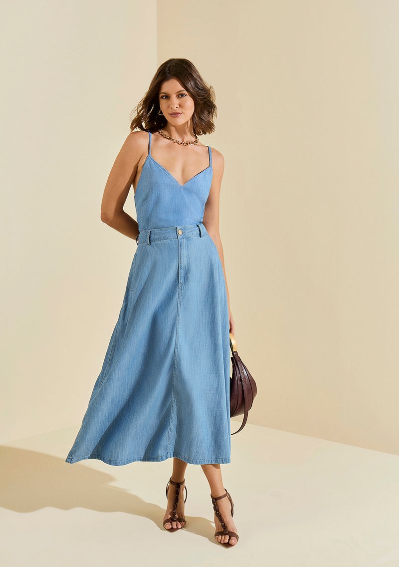 Top Morena Rosa Decote V Alça Fina Azul