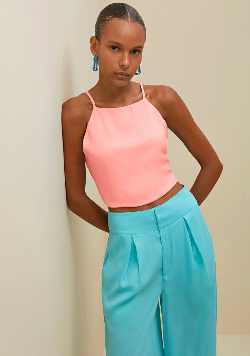 OUTLETLinhasColeçõesRoupasBlusasBlusasTop Morena Rosa Frente Única Alça Com Amarração Rosa