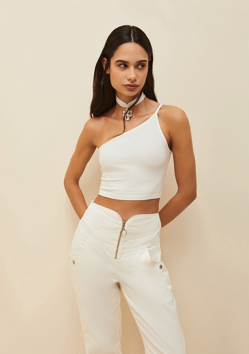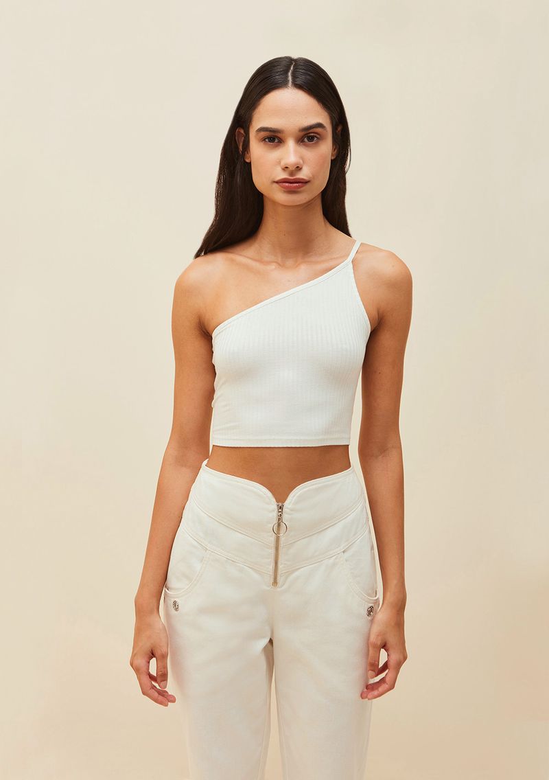 Top Morena Rosa Ombro Só Alça Assimétrico Off White
