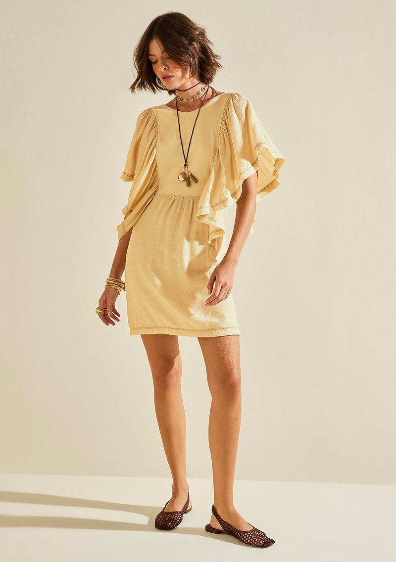 OUTLETLinhasColeçõesRoupasVestidosVestidosVestido Morena Rosa Ajustado Decote Careca Manga Curta Curto Amarelo