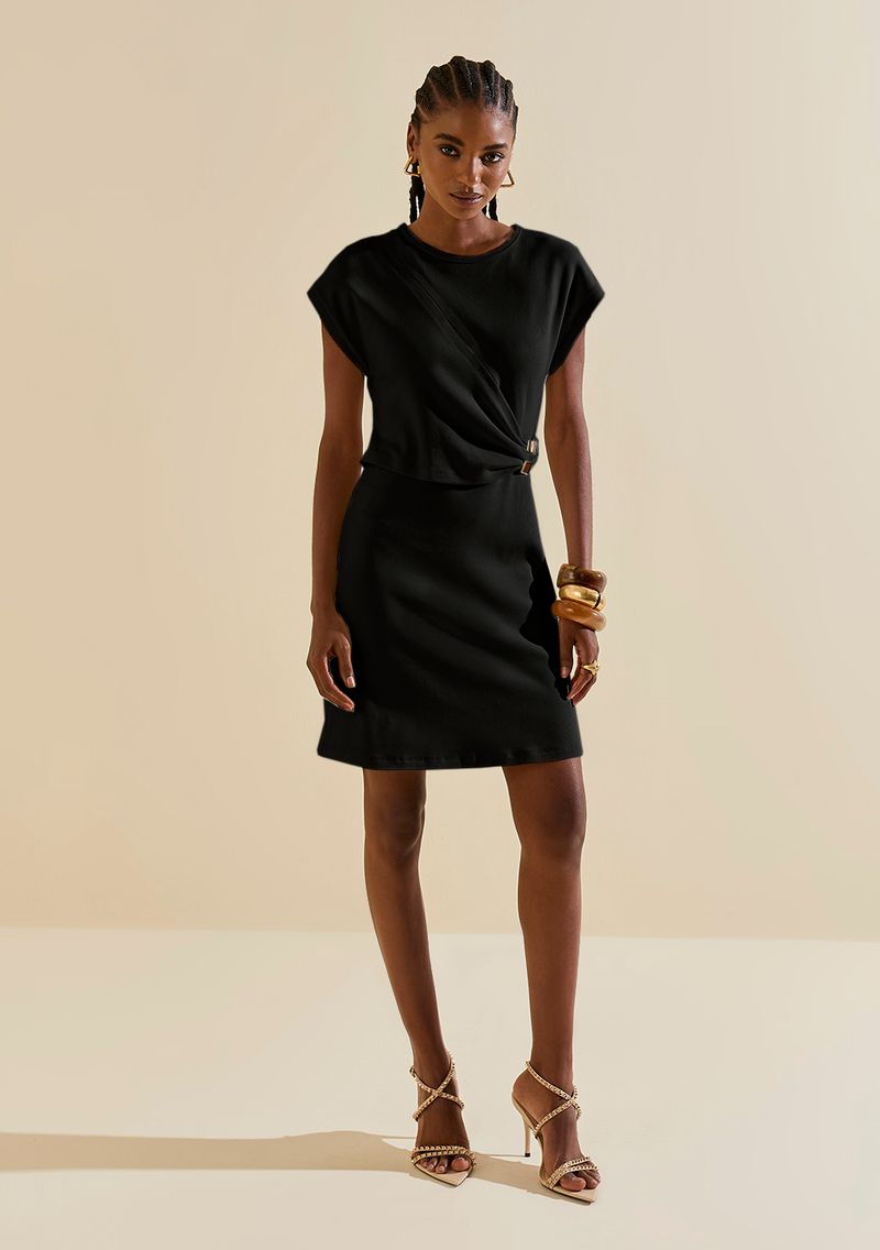 Vestido Morena Rosa Ajustado Decote Careca Manga Curta Curto Preto