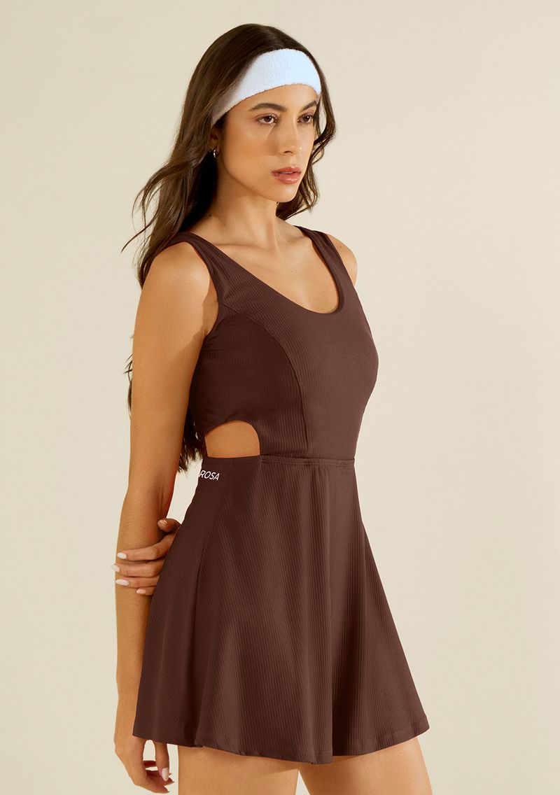 LinhasFitnessVestidosVestido Morena Rosa Ajustado Decote Careca Sem Manga Curto Marrom