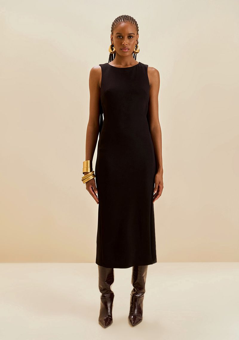 OUTLETLinhasColeçõesRoupasVestidosVestidosVestido Morena Rosa Ajustado Decote Careca Sem Manga Midi Preto