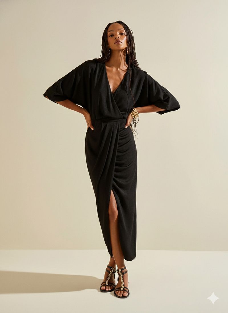 OUTLETLinhasColeçõesRoupasVestidosVestidosVestido Morena Rosa Ajustado Decote Costas Manga 3 Quartos Longo Preto
