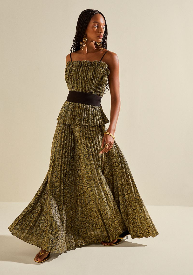 OUTLETLinhasColeçõesRoupasVestidosVestidosVestido Morena Rosa Ajustado Decote Reto Com Alça Longo Amarelo